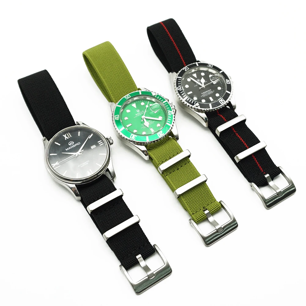 60's French Troops Parachute Special Elastic Nylon Watch Band Man's Universal Nylon Nato Strap Army-Green 20/22mm